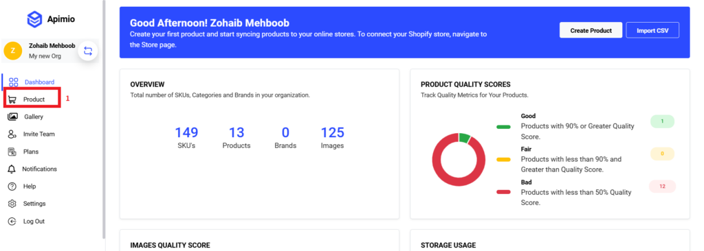 Log in to your Apimio account and open the Products section, where all your product data lives in one place.