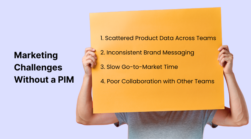 Without a PIM for marketing, even small updates turn into long back-and-forths between teams, dragging out product launches.