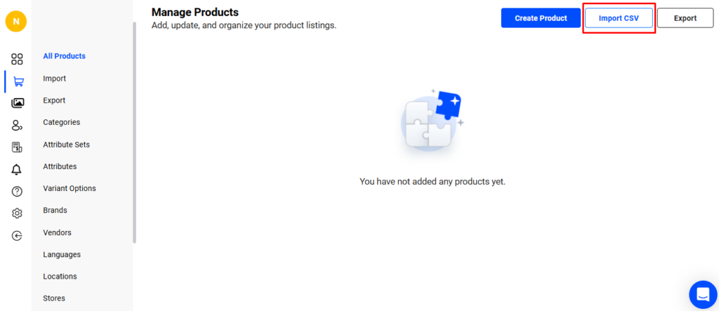 Log in and go to Apimio’s dashboard and choose “Import CSV” or navigate to the “Products” section and select the CSV import option.